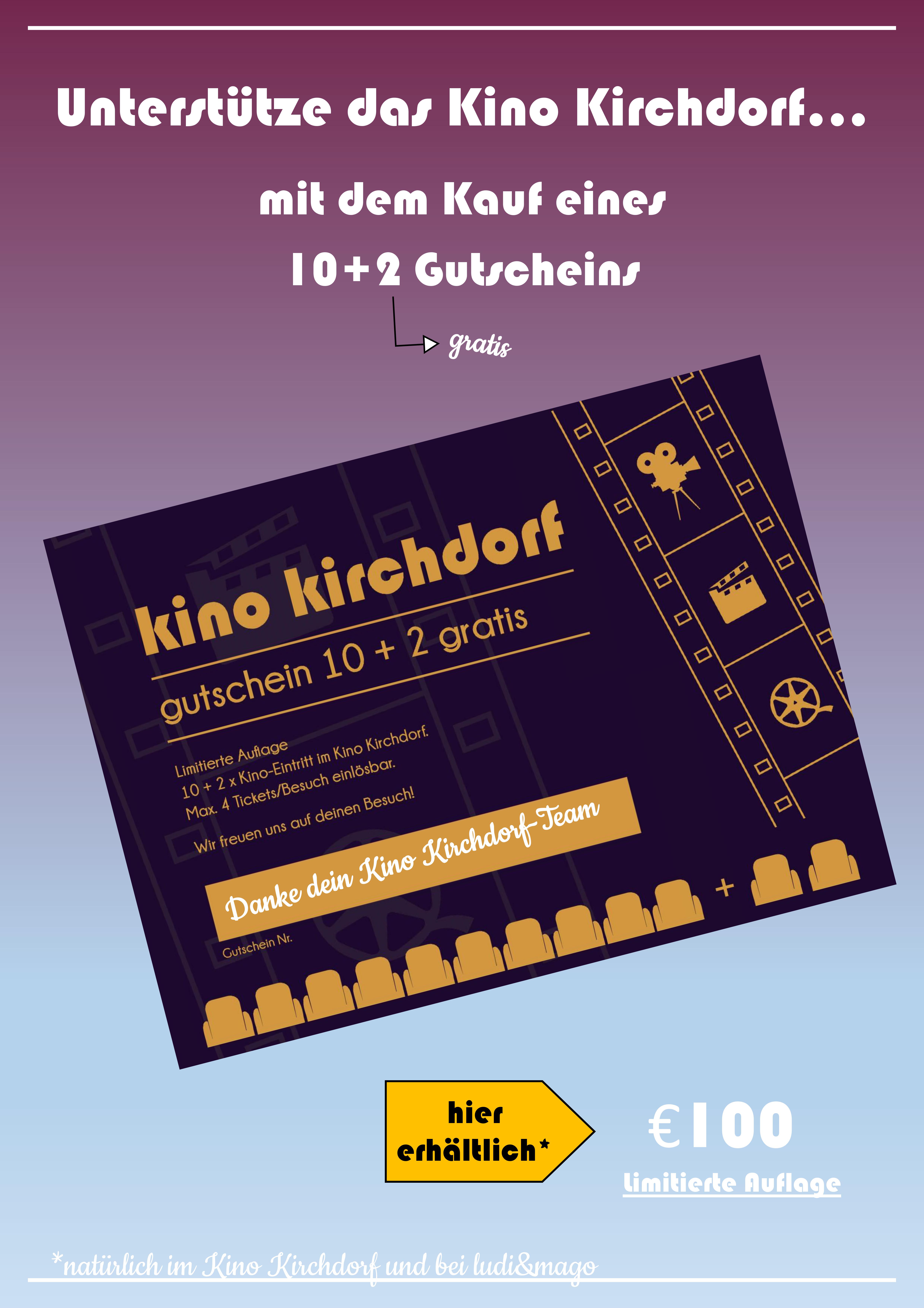 ** max. 4 Tickets je Vorstellung einlösbar, 3D Aufschlag €2,50 pro Ticket, kein Balkonaufpreis!