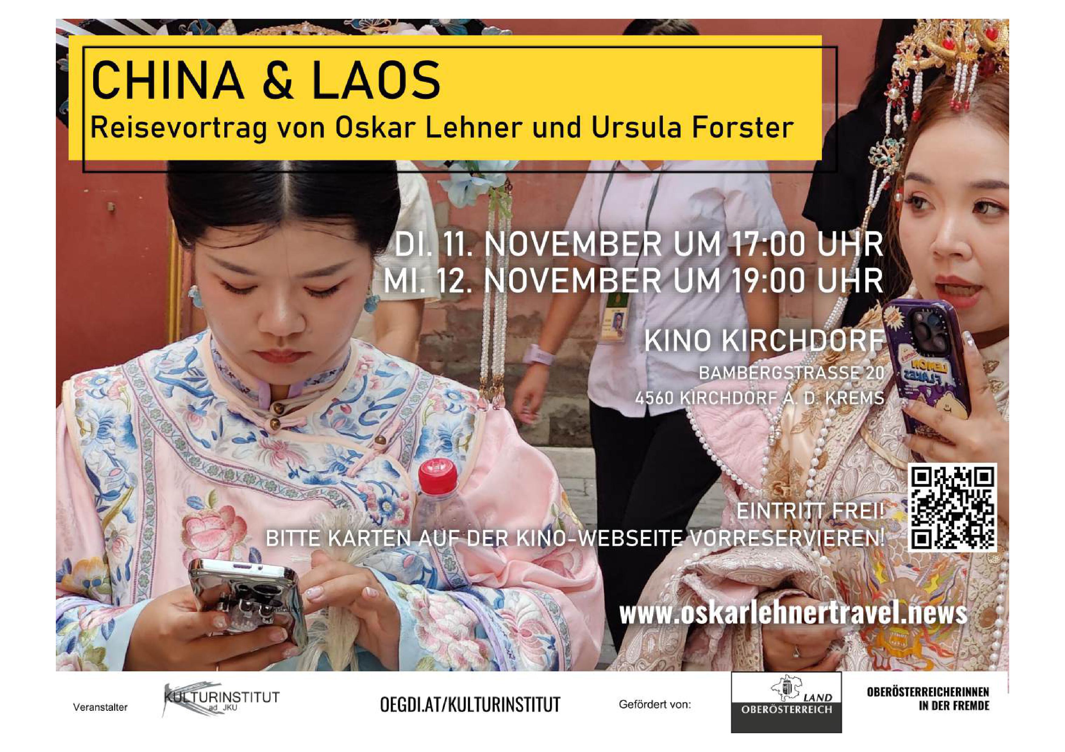 Die beiden Vortragenden Ursula Forster und Oskar Lehner reisen seit 2016 in einem zu einem Wohnmobil umgebauten Geländewagen um die Welt. Im Rahmen ihrer Fahrt entlang der historischen Seidenstraße bereisten die beiden im Herbst 2024 China und Laos. China durften sie mit dem Privatfahrzeug nur in einem Konvoi begleitet von einer Reisebüro-Angestellten befahren.
